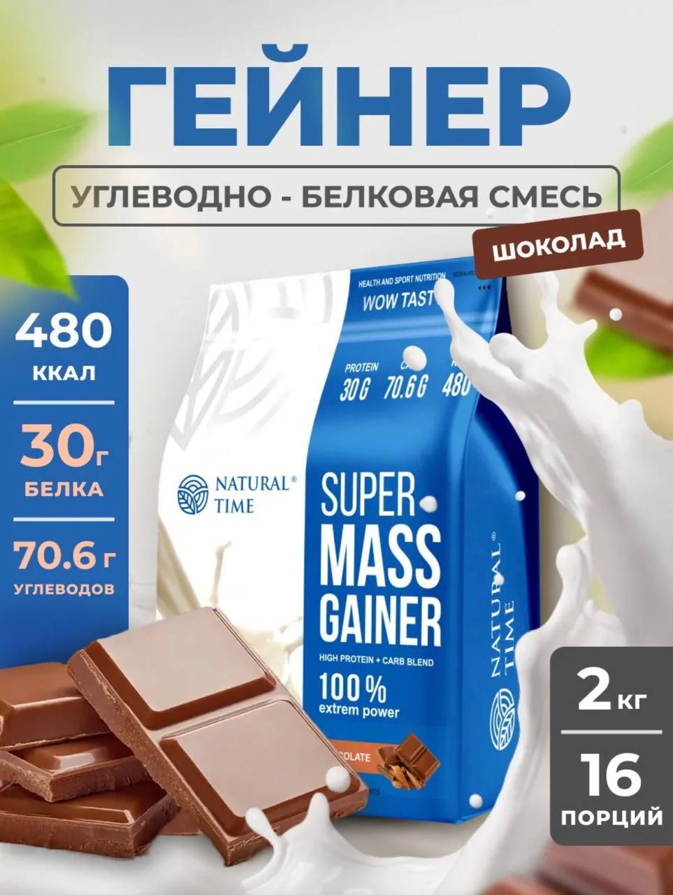 Natural Time Super Mass Gainer 2000g Шоколад