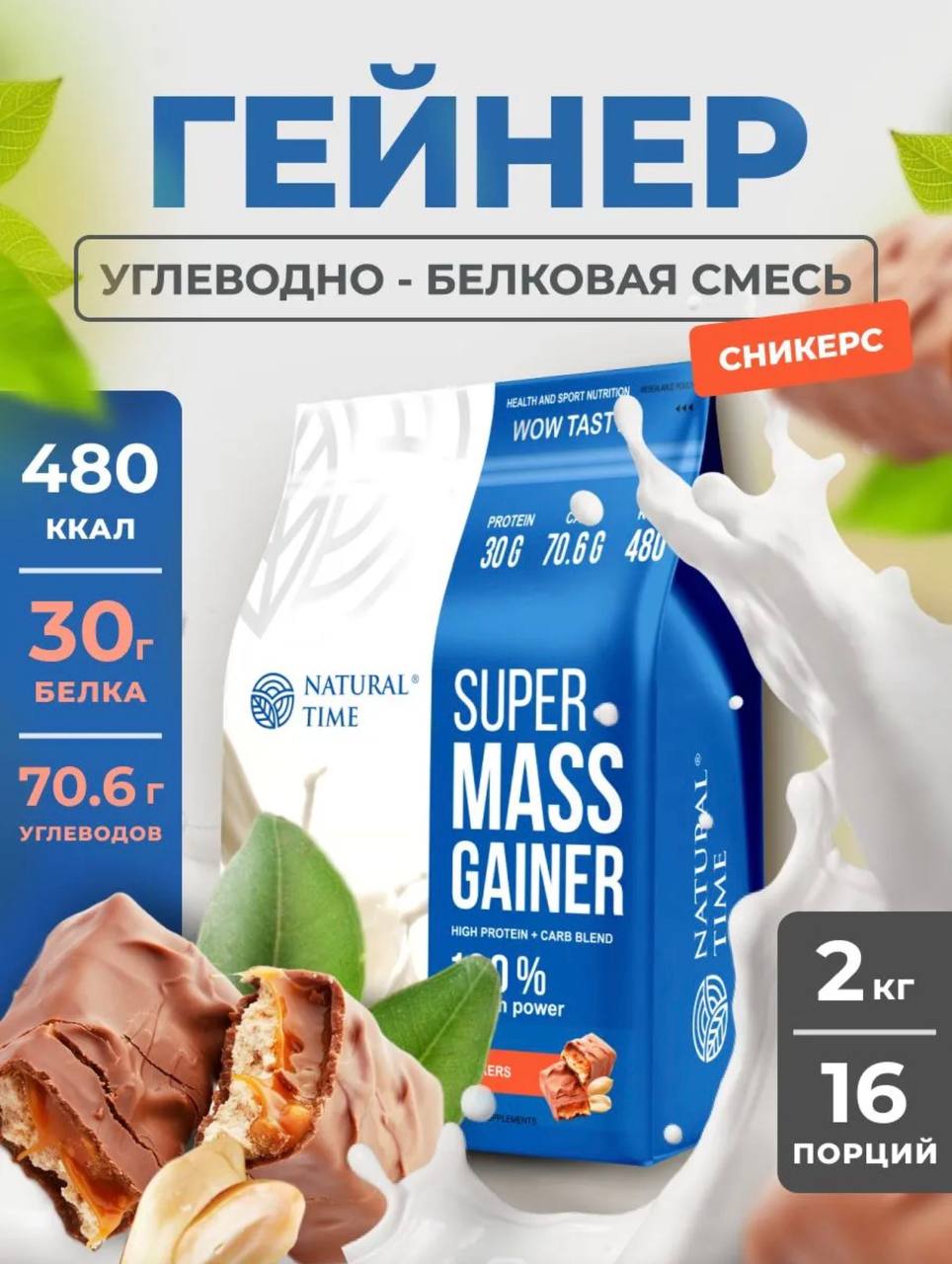Natural Time Super Mass Gainer 2000g Сникерс