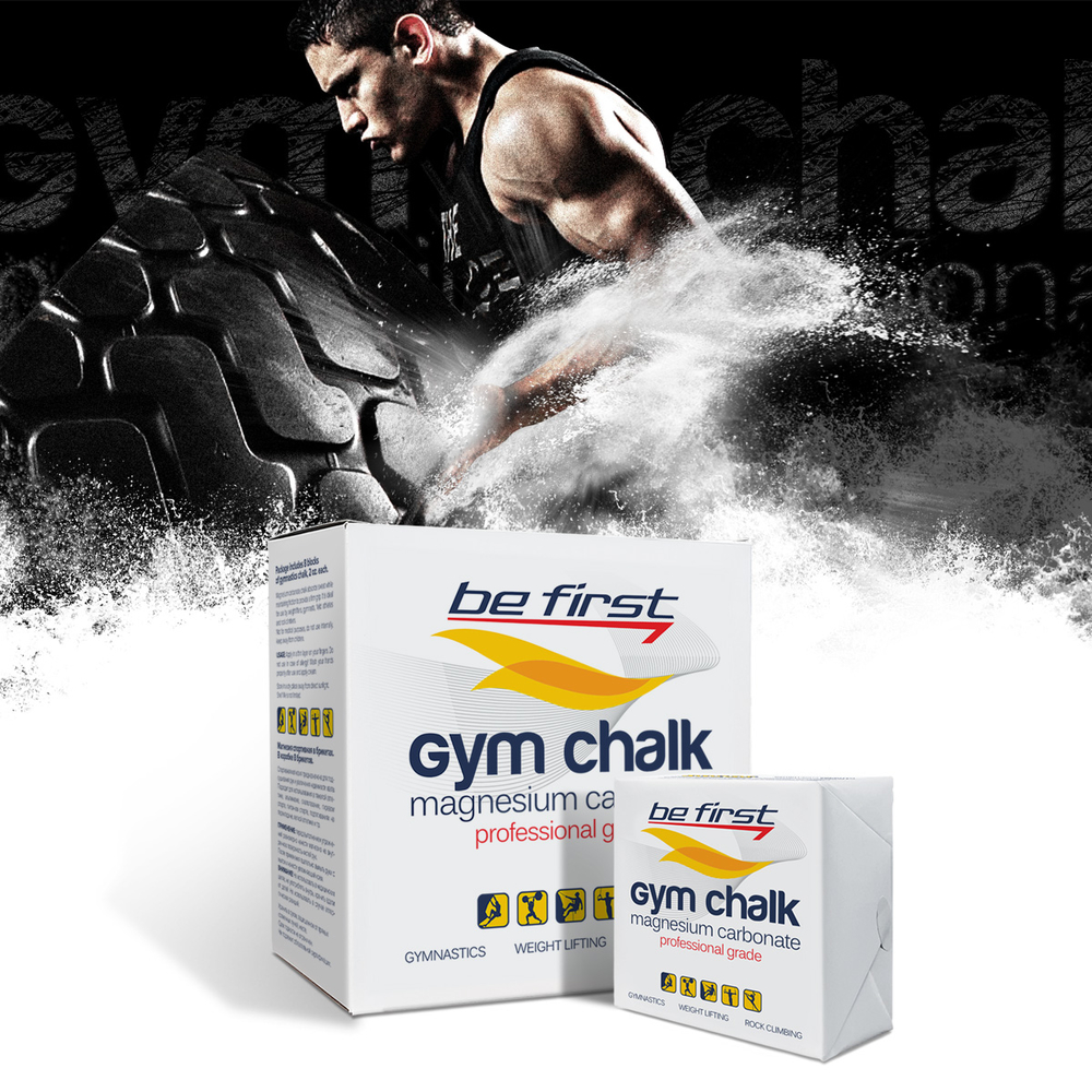 Спортивная магнезия Be First – это белый порошок, состоящий в основном из карбоната магния и предназначенный для подсушивания рук, а также улучшения их сцепления со снарядом при занятиях гимнастикой, тяжелой атлетикой, спортивным альпинизмом и другими видами спорта. Магнезия несколько снижает потоотделение в области ладоней и впитывает пот, увеличивая трение, за счет чего намного снижается вероятность проскальзывания ладоней на грифе или перекладине. Таким образом уменьшается вероятность получить травму, а также исключается необходимость тратить лишние усилия и внимание на удержание снаряда в руках – и, следовательно, повышается эффективность тренировок.