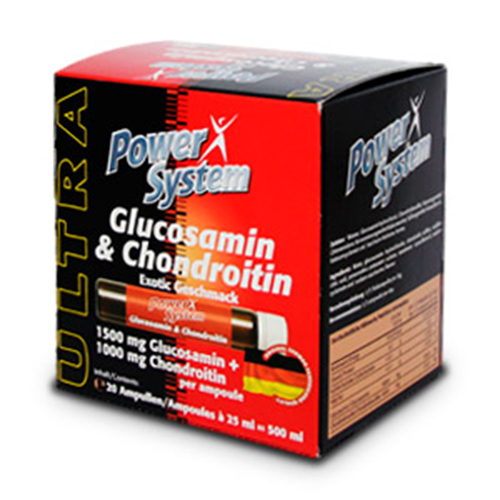 Биологическая роль глюкозамина в прекращении и предупреждении разрушения сустава обусловлена его способностью стимулировать биосинтез компонентов сустава, направленный на его обновление. Хондроитин является хондропротектором, он вызывает синтез гиалуроновой кислоты, укрепляющей соединительные структуры тканей тела, в том числе хрящ, блокирует действие ферментов, разрушающих хрящ, оказывает обезболивающее и противовоспалительное действие в суставах и позвоночнике в покое и при ходьбе, повышает амортизационные свойства хряща, увеличивает подвижность и гибкость суставов. GLUCOSAMIN + CHONDROITIN содержит 1500 мг глюкозамин-сульфата и 1000 мг хондроитин-сульфата в 25 мл. Как показывают исследования, совместное использование глюкозамина и хондроитина в данной пропорции многократно увеличивает общий эффект от их применения (эффект синергии).