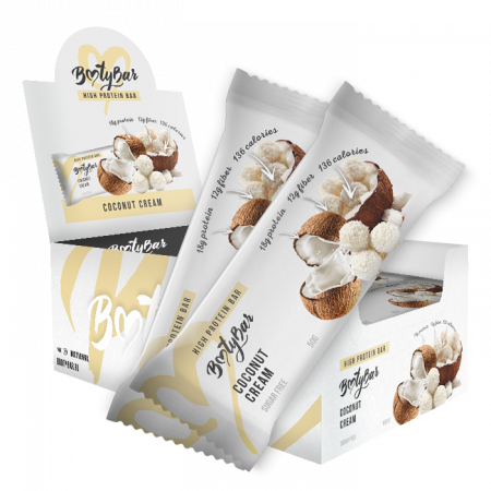 Состав: Концентрат сывороточного белка; концентрат молочного белка; растворимое кукурузное волокно (клетчатка, пребиотик); вода очищенная; изомальтоолигосахарид; кокосовая стружка; кокосовое масло; влагоудерживающие агенты: сорбитовый сироп, глицерин; эмульгатор: соевый лецитин; антиокислитель: лимонная кислота; ароматизатор идентичный натуральному; клетчатка пшеничная нерастворимая; подсластитель: сукралоза; консервант: сорбиновая кислота.