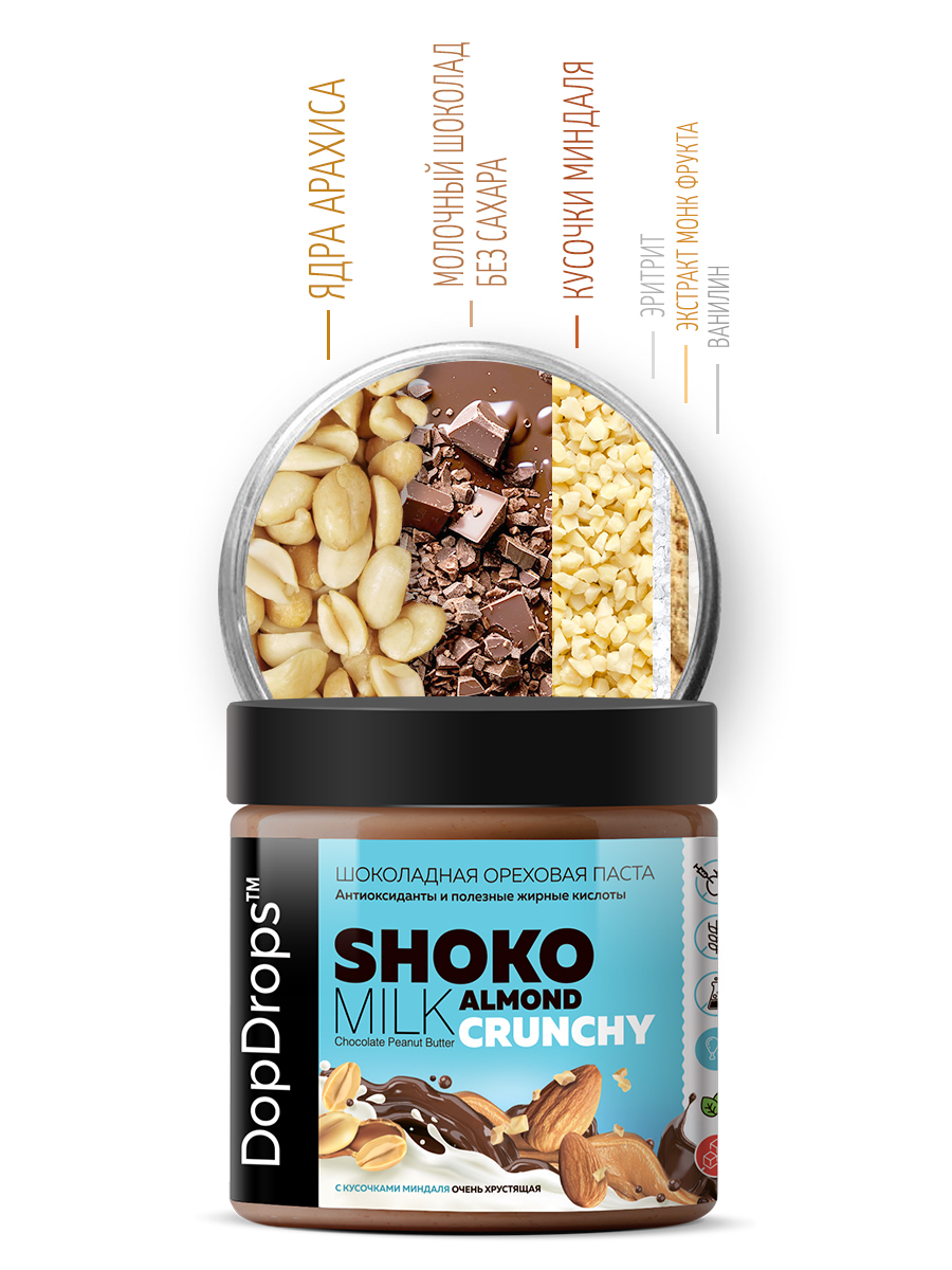 DopDrops Паста Шоколадная ореховая 500г Шоко Милк Пинат Альмонд Хрустящая