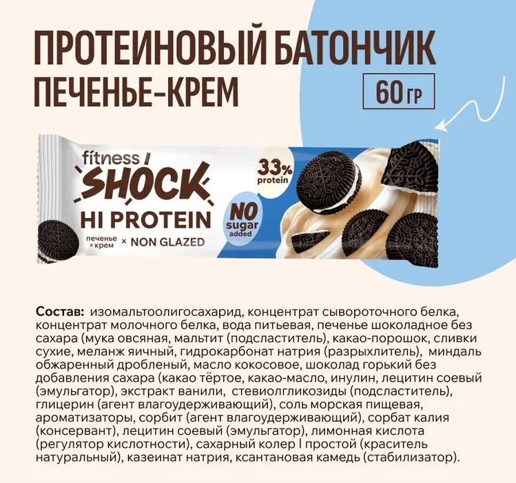 FitnesShock Батончик неглаз. HI PROTEIN 60гр Печенье-крем