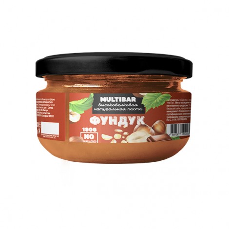 Паста ореховая с фундуком высокобелковая (без сахара) MULTIBAR 190 гр