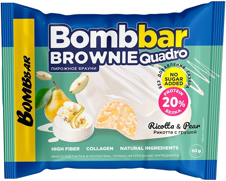 Bombbar Протеиновый брауни 50гр Рикотта с грушей