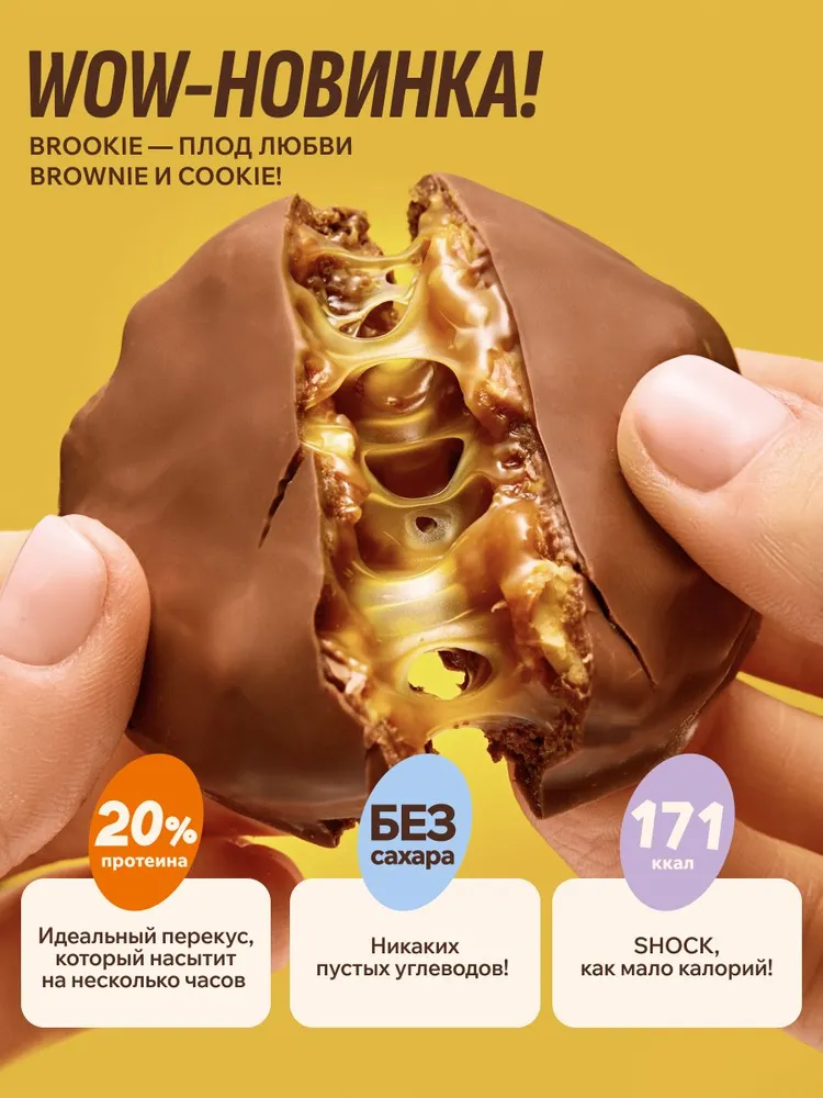 Что будет, если соединить наш легендарный BROWNIE и COOKIE? Беспрецедентная, крышесносная и шокирующая wow-новинка! Встречайте BROOKIE!!! Это не просто десерт. Это уникальный десерт, который навсегда станет вашим ТОП-1. Мы нашли новое идеальное сочетание: обжаренный арахис в мягкой сливочной карамели и нежный бисквит легендарного брауни «горячий шоколад». Всё это в тёмной шоколадной глазури. SHOCK, как вкусно! Конечно же, мы не забыли о пользе. 20% протеина, только натуральные ингредиенты, без трансжиров, сахара и чувства вины. Наши протеиновые десерты бруки fitness SHOCK совсем не отличаются по вкусу от тех, к которым вы привыкли. Главное преимущество fitness SHOCK – сочетание потрясающего вкуса и пользы в каждом десерте! Готовы поспорить, что вам сложно будет найти что-то похожее. BROOKIE fitness SHOCK – уникальный десерт, который отлично подойдет в качестве полезного перекуса утром, на учебе, работе, в путешествии и на прогулке. Всего 1 брауни способен утолить чувство голода на несколько часов! Это идеальный вариант для тех, кто любит сладкое и придерживается здорового образа жизни. BROOKIE совсем не содержат добавленного сахара, в составе только качественный сывороточный протеин, что позволяет получить максимум белка и пользы. fitness SHOCK – бренд полезных десертов. Мы занимаемся производством протеиновых сладостей без сахара. Наше печенье, маффины, брауни и батончики — идеальный вариант для ежедневных перекусов с удовольствием и пользой. А те, кто любит спорт и ЗОЖ, найдут для себя в ассортименте FitnesSHOCK необходимое количество белка. Мы даем возможность есть десерты каждый день и не испытывать чувство вины за это. Продукция подходит для ЗОЖ, ПП, как спортпитание. Приобретая ПП сладости Fitness SHOCK без сахара вы выбираете наслаждение вкусными десертами без вреда для здоровья и стройной фигуры. Сладкое может быть полезным! Также его можно преподнести как вкусный подарок мужчине, женщине, маме, папе, сестре, брату, сыну, дочке, подруге, и конечно же, любимому человеку – парню или девушке. Такой сладкий бокс выручит вас на любой праздник: Новый год, День матери, 23 февраля, 8 Марта, Пасха, станет прекрасным дополнением к подарку на день рождения или на 14 февраля.