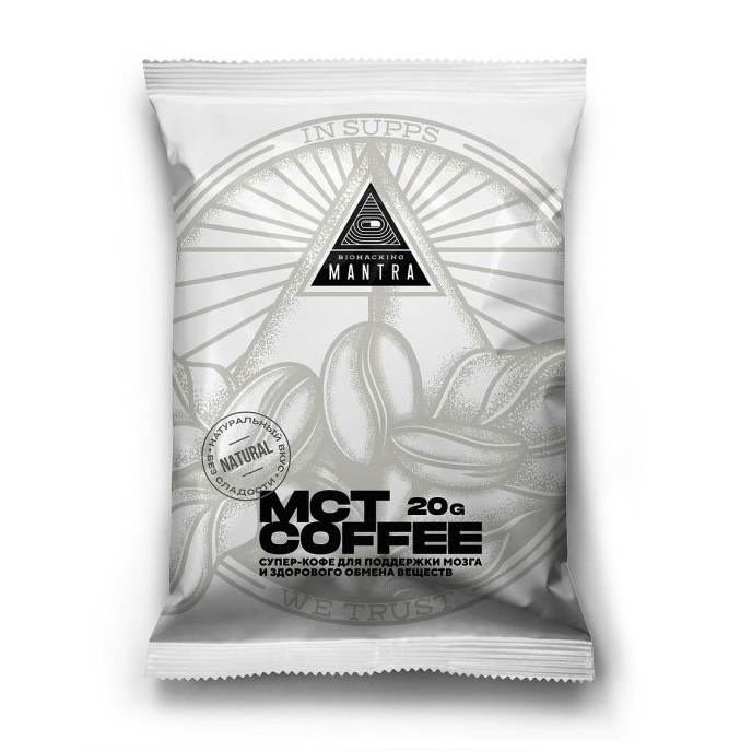 Mantra Coffeе — это натуральный растворимый кофе с кокосовым молоком и МСТ, полученными из органического кокосового масла. Что такое МСТ? МСТ — триглицериды средней цепи (каприновая и каприловая кислоты), являющиеся основным источником энергии в виде легкоусвояемого жира, который сжигается организмом только для производства энергии, не превращаясь в лишние килограммы. Одна чашка Mantra Coffeе утром натощак полностью заменит вам завтрак, восполняя все калории и избавляя вас от чувства голода на 3-4 часа. У этого напитка слишком много преимуществ: Обеспечивает мозг питательными здоровыми жирами; Повышает метаболизм на 12 %; Снижает уровень накопления жиров в организме; Усиливает работу мышц; Улучшает внимание. Чувствуйте больше энергии, больше здоровья, больше идей для реализации ваших планов с Biohacking Mantra Coffeе !